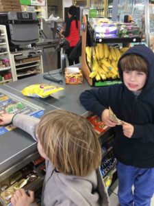 Outing at 7-11. Working on: staying by mom, not touching all the things, only selecting one item, and interacting with the cashier.