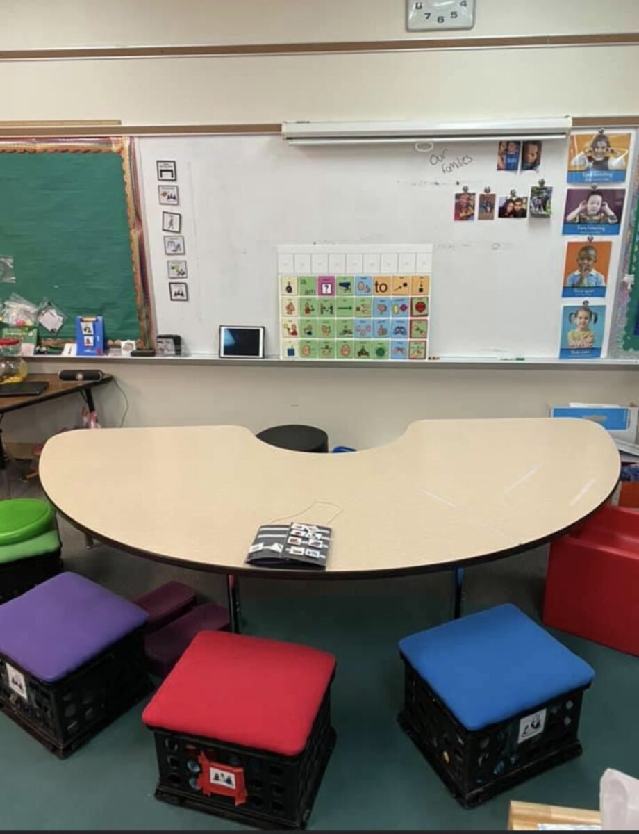 - A calm corner with sensory tools, choice boards, and visuals