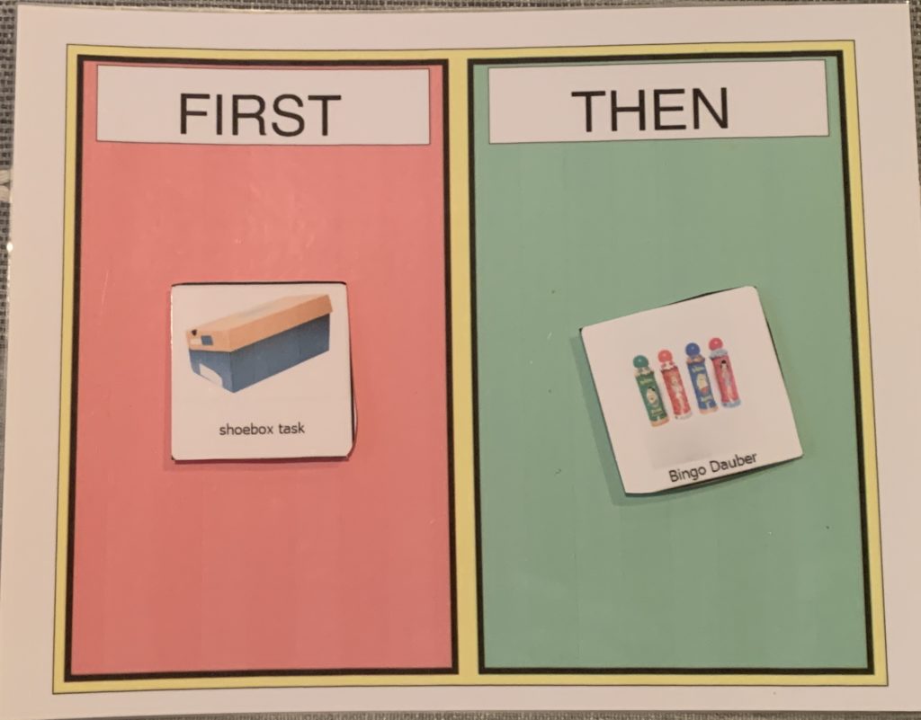 Whether you’re at home or in school, you will want to make sure the area is “sanitized”, and I don’t mean cleanliness wise here (although during COVID that won’t hurt either). Choose an area in the house/classroom where there is the least amount of clutter and extra toy distractions. If you’re in a classroom, use wall dividers to close up center areas with toys. If you’re at home, you can have a little table that you pull out in the living room or in your office. Pulling out the small table is a visual signal that it’s time for activities! Put away extra toys lying around so they’re not distracting. Have those identified reinforcers and activities readily available and close by! It is also important to put the activities and reinforcers up following an activity so that there is not free access to them.