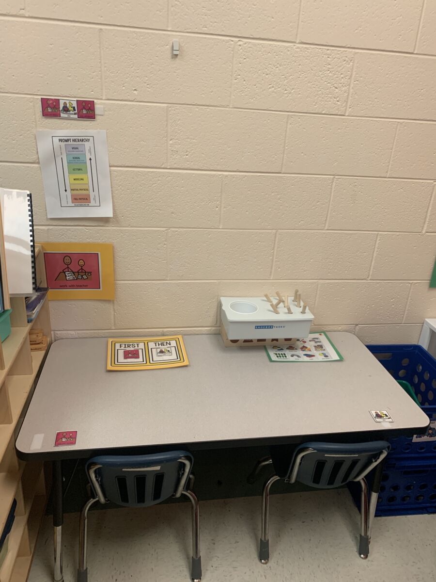 - First/Then boards at individual workspaces
